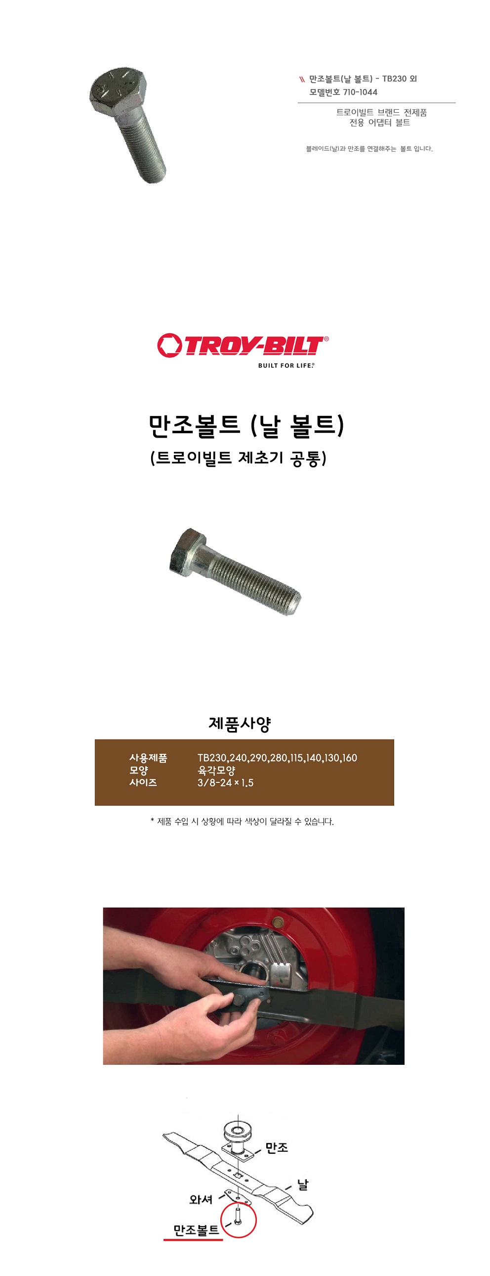 > 만조볼트(날볼트)-트로이빌트 제초기 전제품