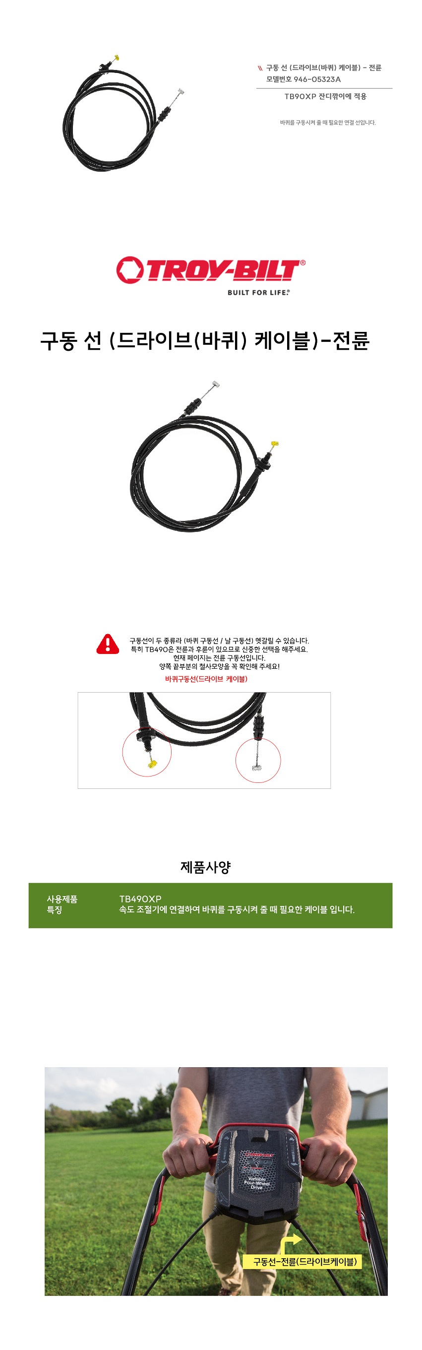 > 구동선(드라이브케이블) 전륜-TB490XP