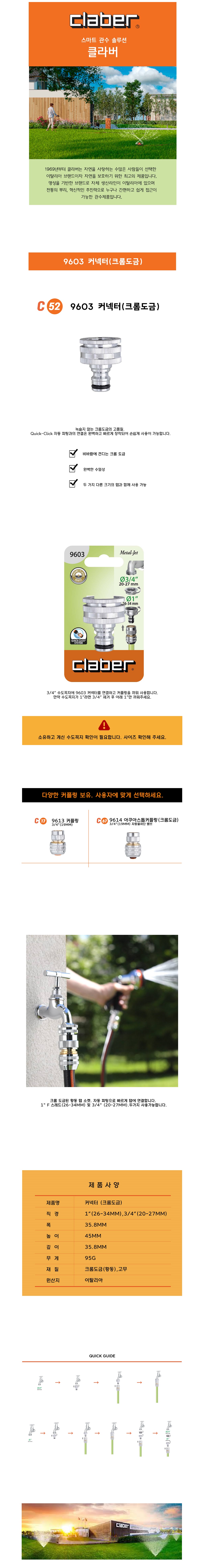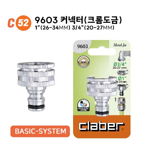 > C52. 9603 커넥터(크롬도금) 1"(26-34MM) 3/4"(20-27MM)