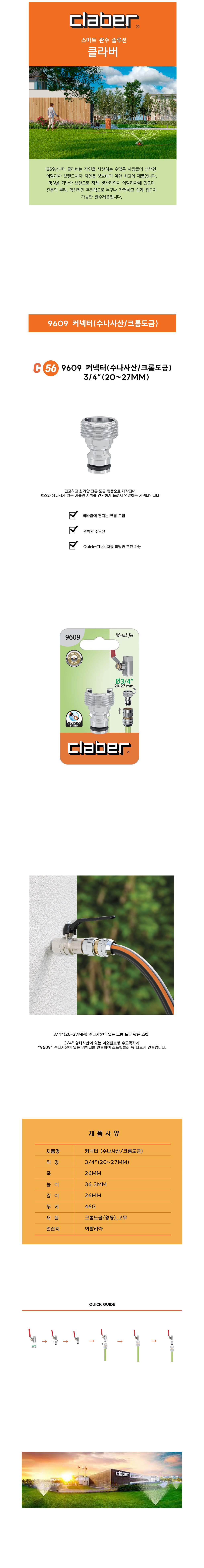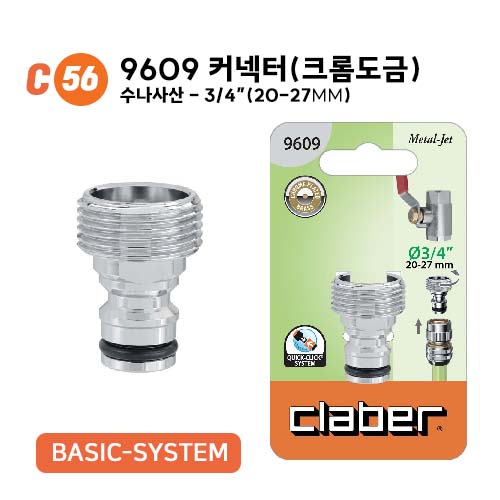 C56. 9609 커넥터(수나사산,크롬도금) 3/4"(20-27mm)